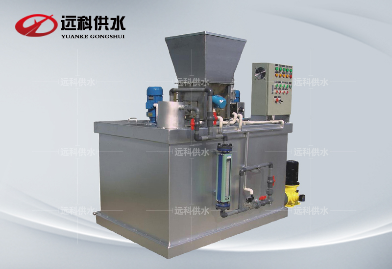 一體化加藥裝置主要由干粉投加器、溶藥箱、攪拌器、供水管路、自動控制柜、液位開關等部分組成。